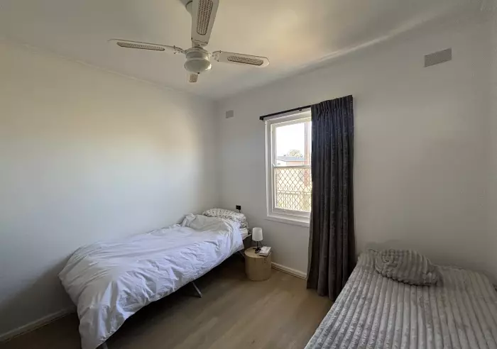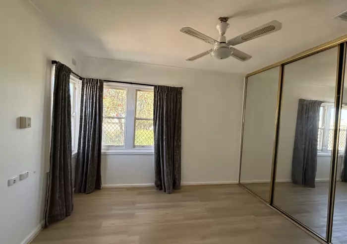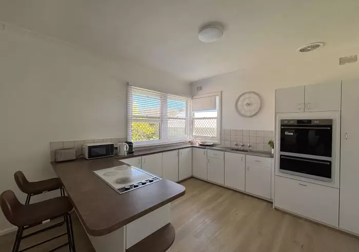 Offering two/three bedrooms (main with built-in robe), one bathroom, two toilets, a flexible layout that includes a rear sleep-out or office space, plus a separate lobby and laundry. The open kitchen and dining area flows into a large lounge room, creating plenty of space for living or entertaining.