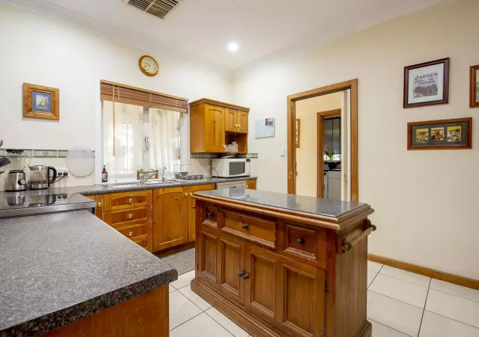 Adding even more appeal is the fully self-contained granny flat, complete with tiled flooring throughout, a split-system air conditioner, a ceiling fan, a fully equipped kitchen, and a modern bathroom — ideal for guests, extended family, or potential rental income.