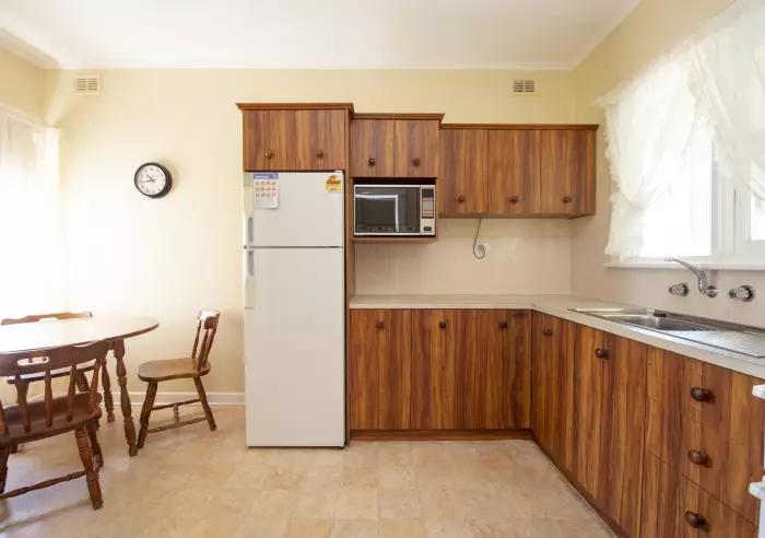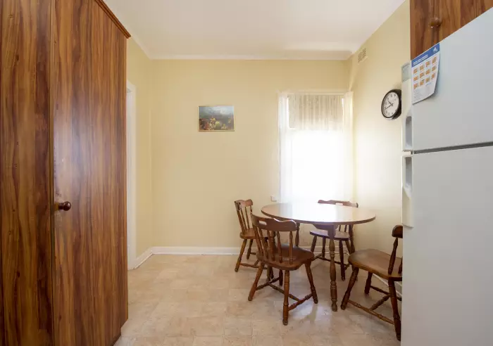 The bathroom is tastefully tiled, and the light-filled lounge room is also equipped with a split-system A/C. The kitchen and dining area provide generous cupboard space and a functional layout, ideal for everyday living.