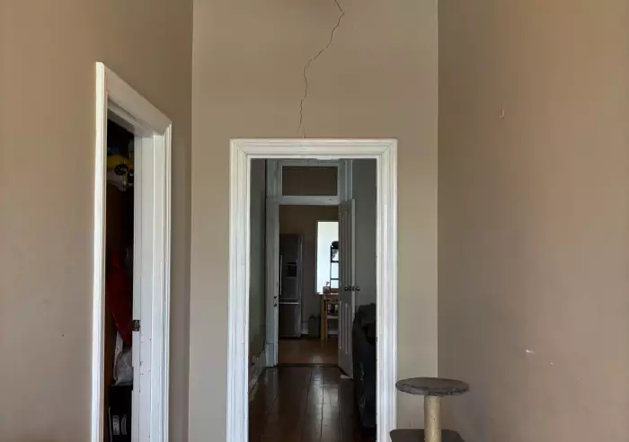 To the rear of the home is the bathroom with some movement, a large laundry, with cracked floor tiles and a separate toilet with movement/foundation issues. Outside, the property boasts a substantial 30 x 20 shed with power and concrete flooring, as well as a carport approximately 20 x 25 in size