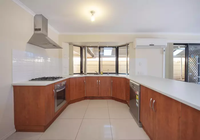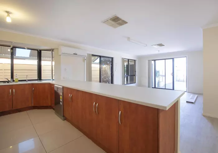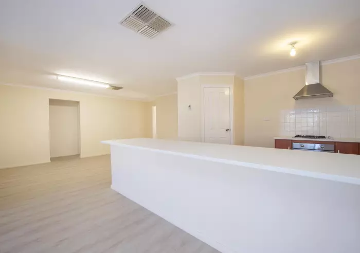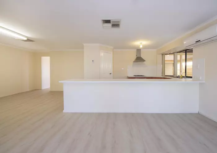 The heart of the home is the open plan family, casual dining and kitchen area, designed for everyday comfort and functionality. The kitchen boasts ample cupboard space, large benchtops, a pantry, dishwasher and stainless-steel range hood, complemented by split system air conditioning to keep the space comfortable year-round.
