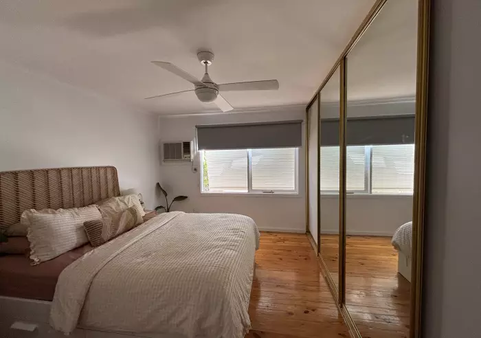All bedrooms are generously sized, with the main bedroom including built-in robes, a ceiling fan & RAC Air-conditioner, while the second bedroom also has a ceiling fan. The centrally located bathroom includes a separate shower and bath, with the laundry and toilet nearby providing additional storage.