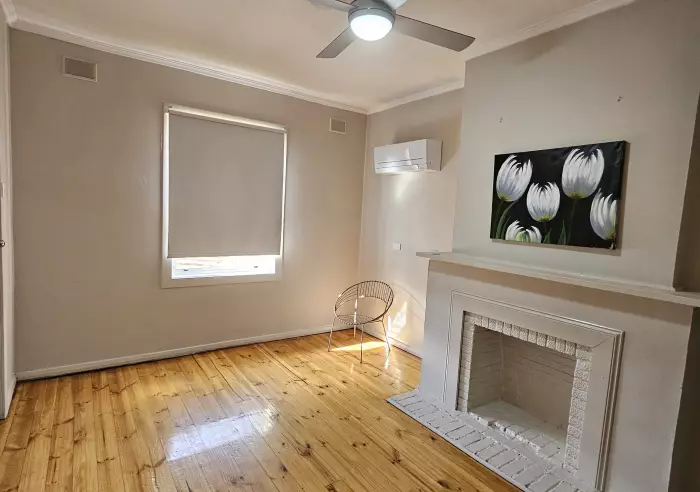 Enter through the front living room with feature fireplace, split system and ceiling fan for all year comfort. Comprising of 3 bedrooms all with ceiling fans, bathroom with shower over bath and vanity. The modern kitchen and dining is beautifully renovated and has great cupboard space, gas stove and ceiling fan. The laundry is separate with separate toilet.